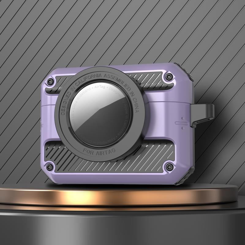 For AirPods Pro Automatic Flip Switch TPU+PC Earphone Case with AirTag(Purple)