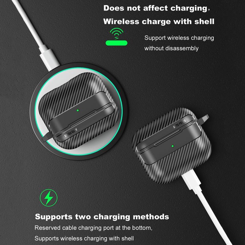 For AirPods Pro Carbon Fiber Texture Anti-fall Earphone Protective Case(Black)