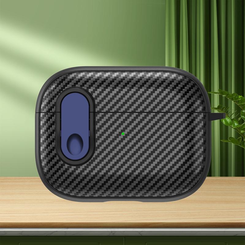 For AirPods Pro Carbon Fiber Texture Wireless Earphones Case with Security Lock(Blue)
