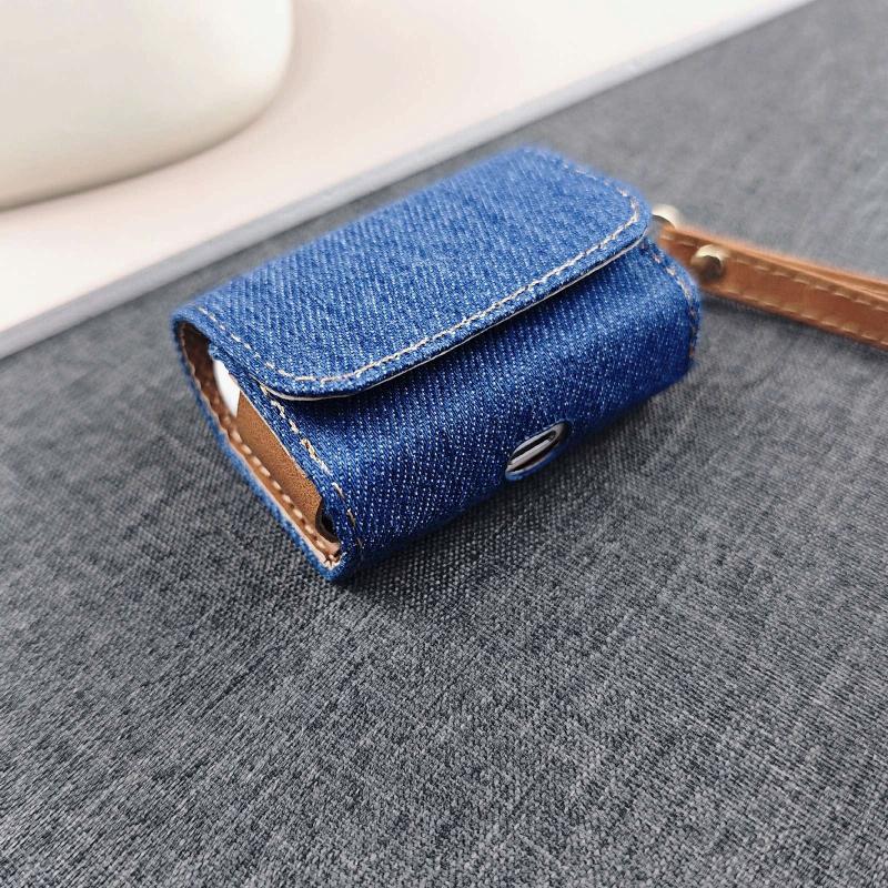For AirPods Pro Cowboy Fabric Texture PU Headset Protective Bag(Blue)