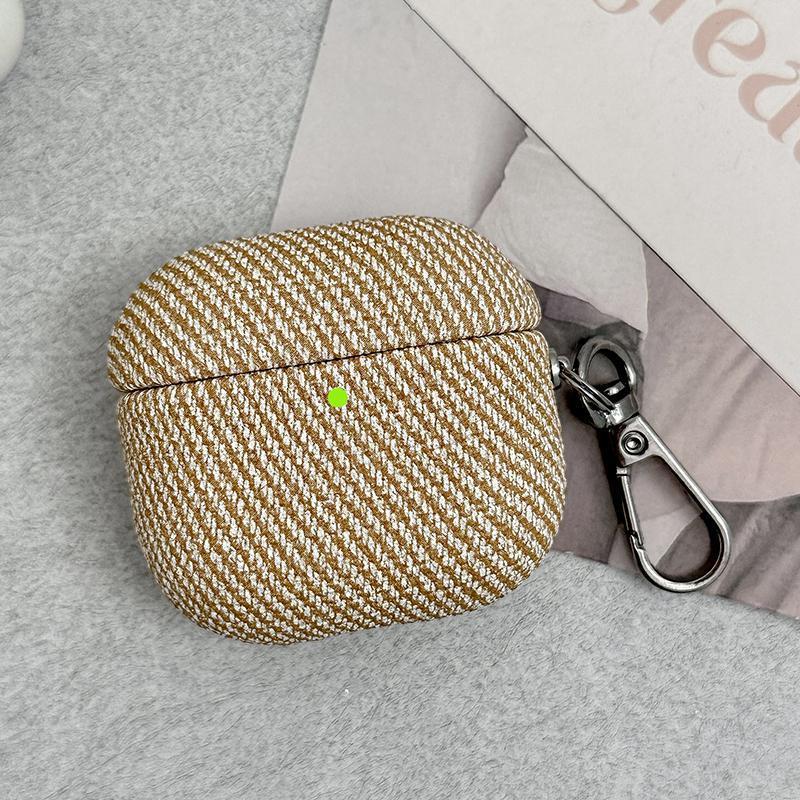 For AirPods Pro Diagonal Striped Leather Bluetooth Earphone Protective Case(Apricot)