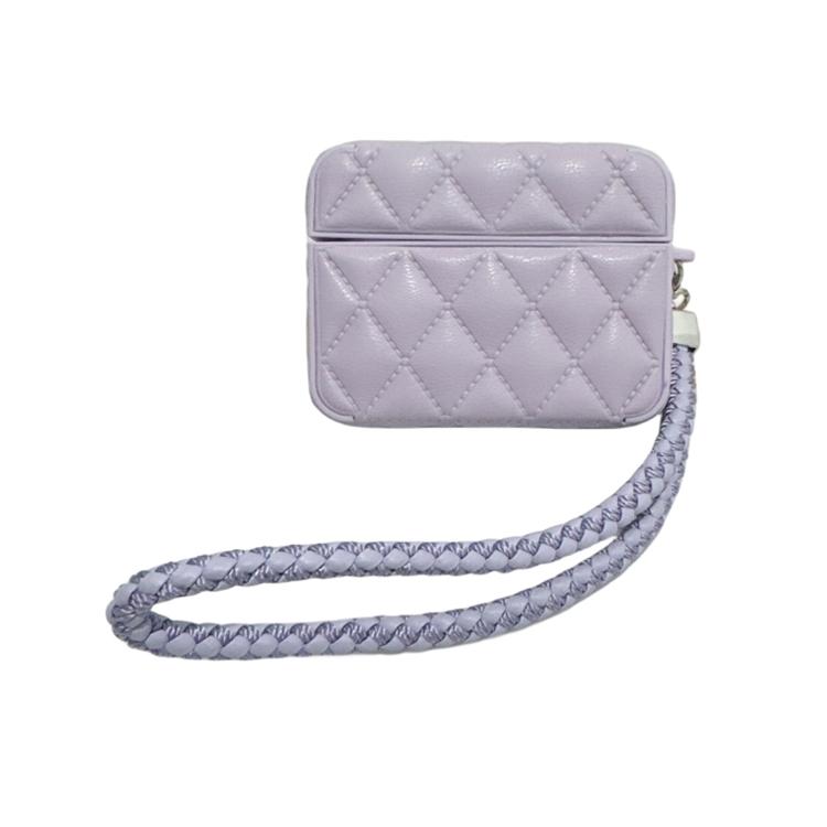 For AirPods Pro Down Coat Texture PU Earbuds Box PC Case with Lanyard(Purple)