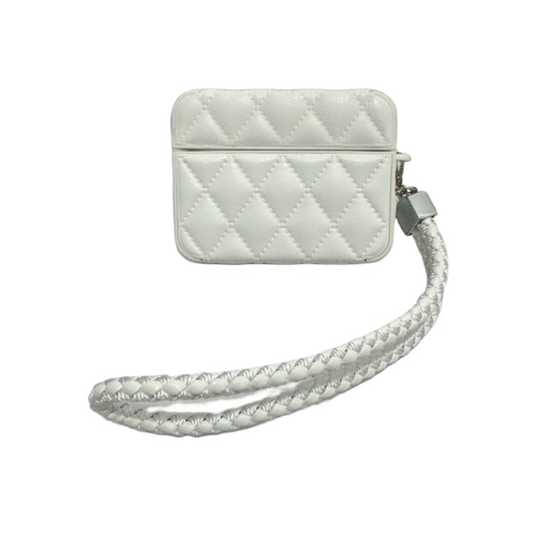For AirPods Pro Down Coat Texture PU Earbuds Box PC Case with Lanyard(White)