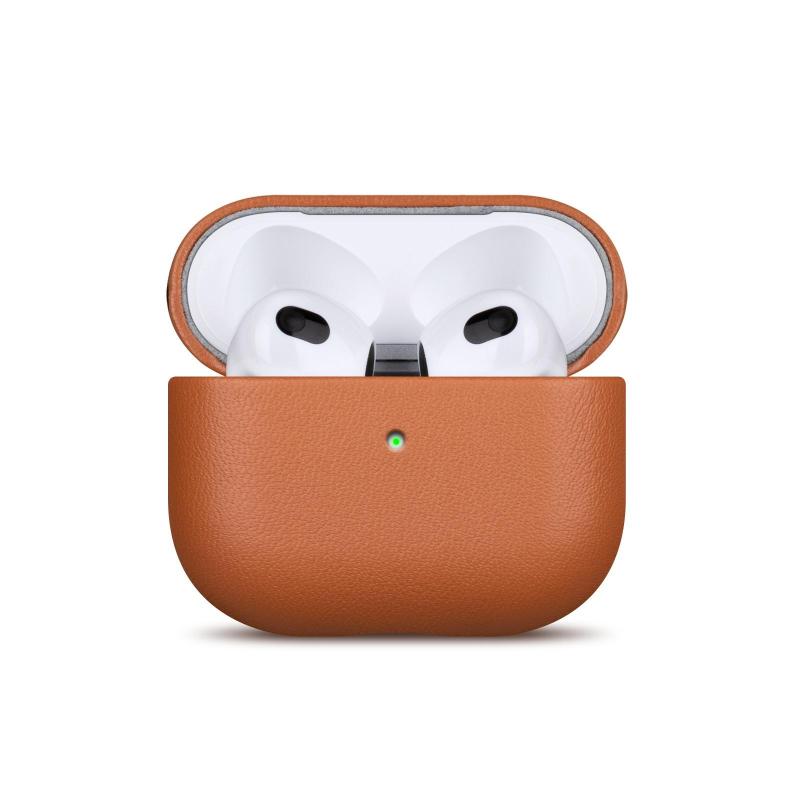 For AirPods Pro Full-grain Genuine Leather Earbuds Protective Case(Brown)