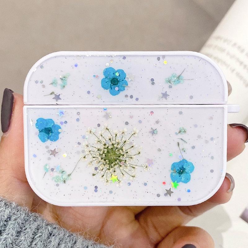For AirPods Pro Gypsophila Flowers Pattern Wireless Earphone Protective Case(Blue)
