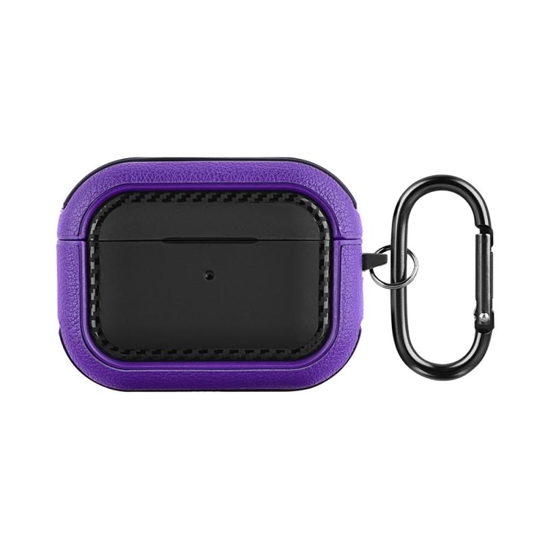 For AirPods Pro Leather Texture Earphone Protective Case(Black Purple)