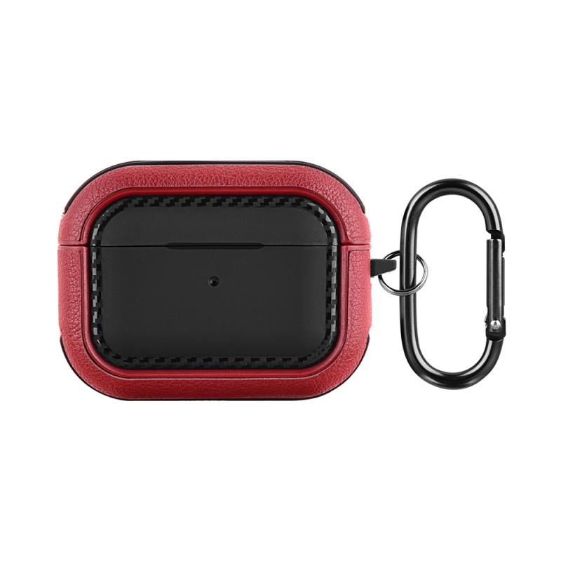 For AirPods Pro Leather Texture Earphone Protective Case(Black Red)