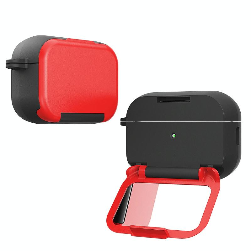 For AirPods Pro Mirror Stand Silicone Earphones Protective Case(Red)