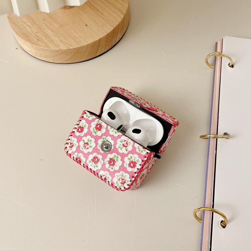 For AirPods Pro PU Leather Wireless Earphone Case(Little Red Flower)