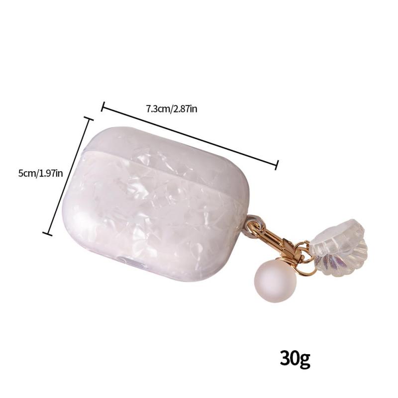 For AirPods Pro Shell Texture Pearl Hanging Buckle Earphone Case(White)