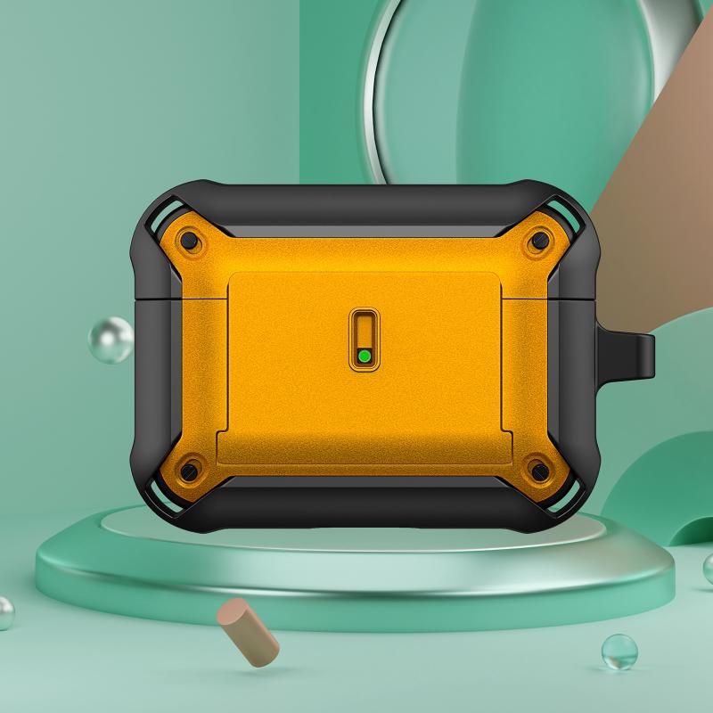 For AirPods Pro Sliding Buckle Wireless Earphone Protective Case with Hook(Black Yellow)