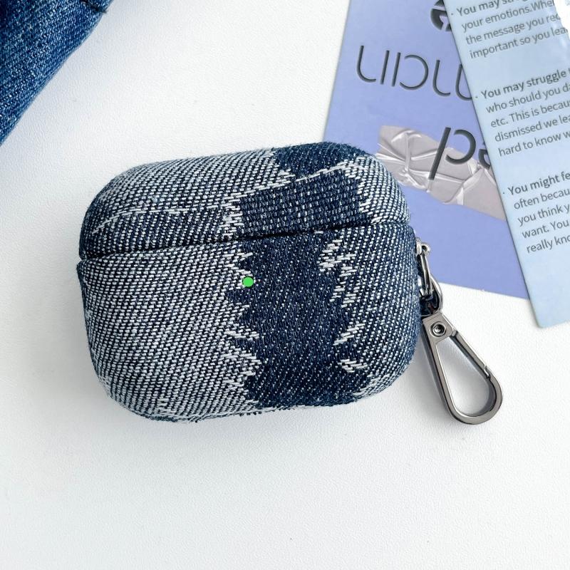 For AirPods Pro Stitching Denim Cloth Bluetooth Earphone Protective Case(Light Color Lightning)