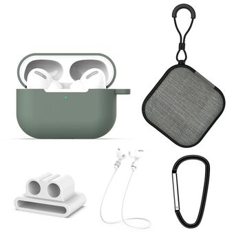 For AirPods Pro 5 in 1 Silicone Earphone Protective Case + Earphone Bag + Earphones Buckle + Hook + Anti-lost Rope Set(Blue)