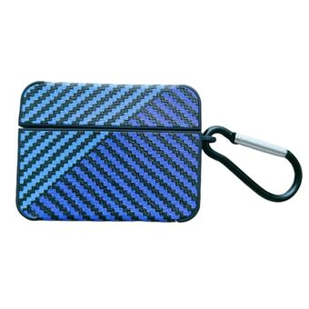For AirPods Pro Carbon Fibre Texture PU Earbuds Box PC Case with Hook(Dark Blue)