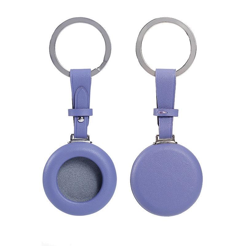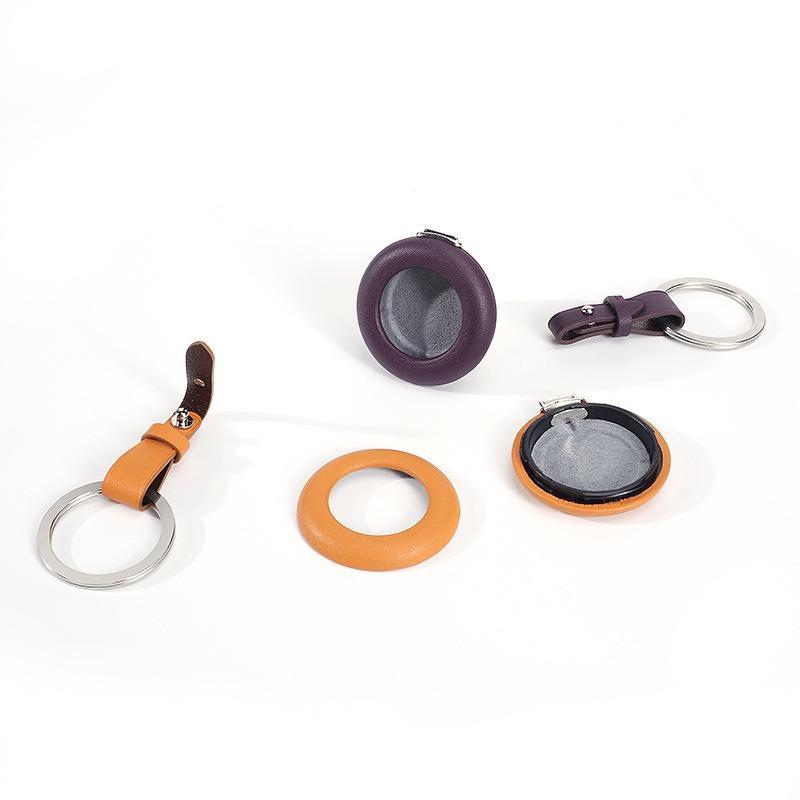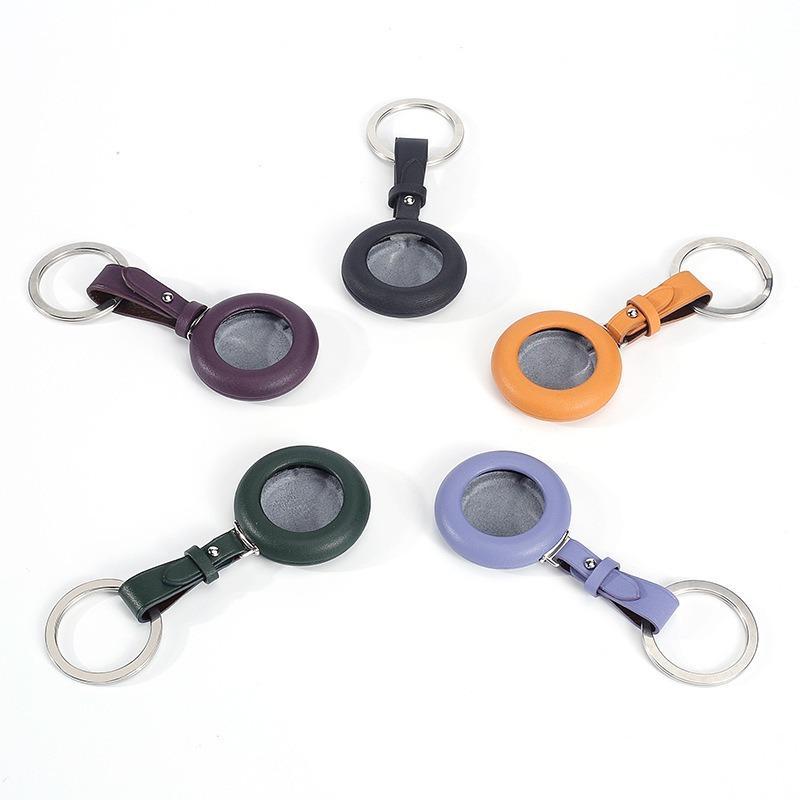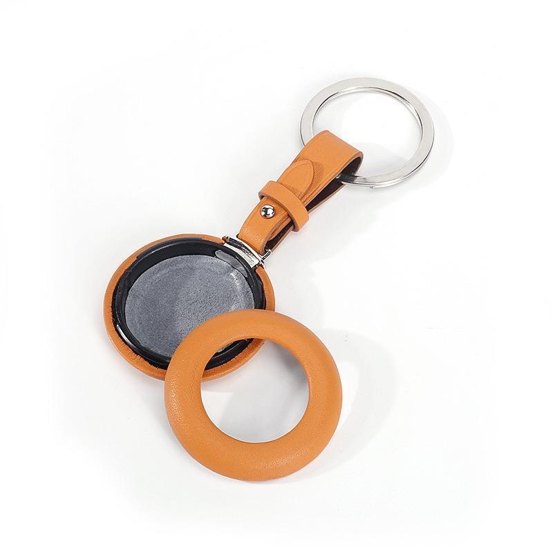 For Airtag Genuine Leather Shockproof Anti-scratch Protective Case Cover with Keychain(Orange)