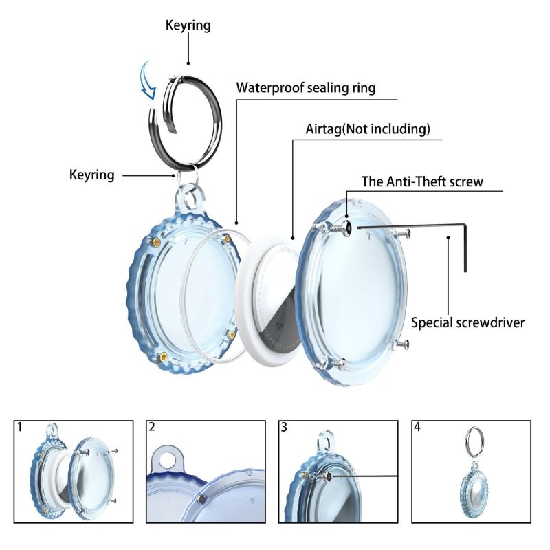 For Airtag IP68 Waterproof Full Cover PC Case With Key Ring(Transparent Blue)