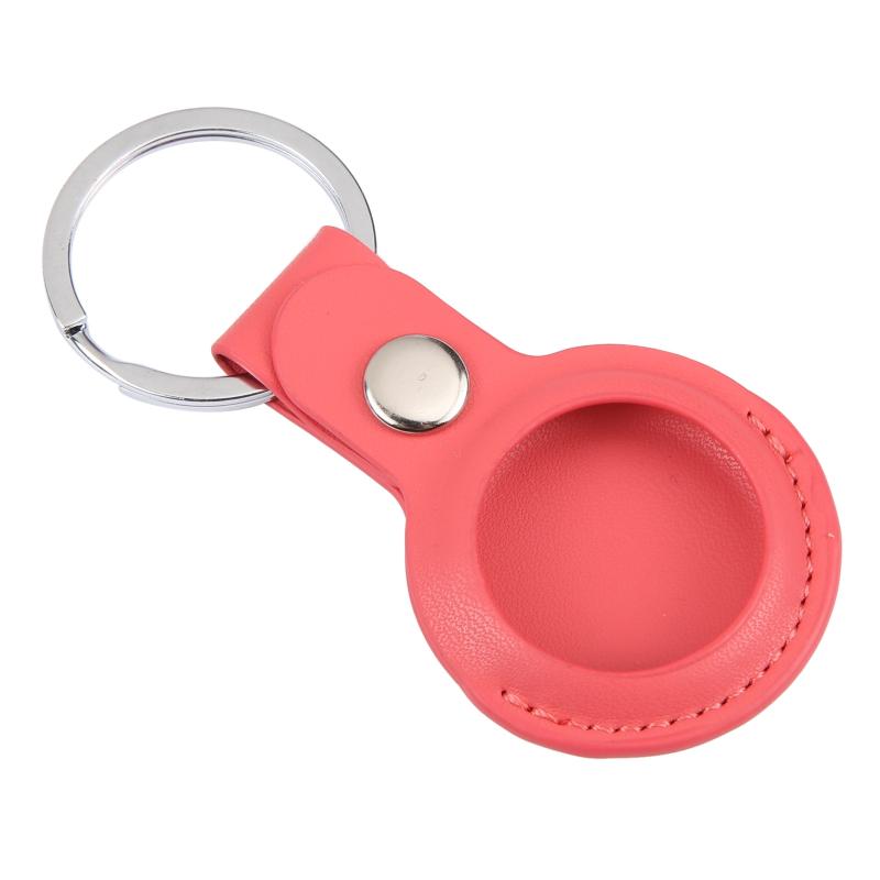 For AirTag Shockproof Anti-scratch Leather Protective Case Cover with Hang Loop Key Chain(Rose Red)