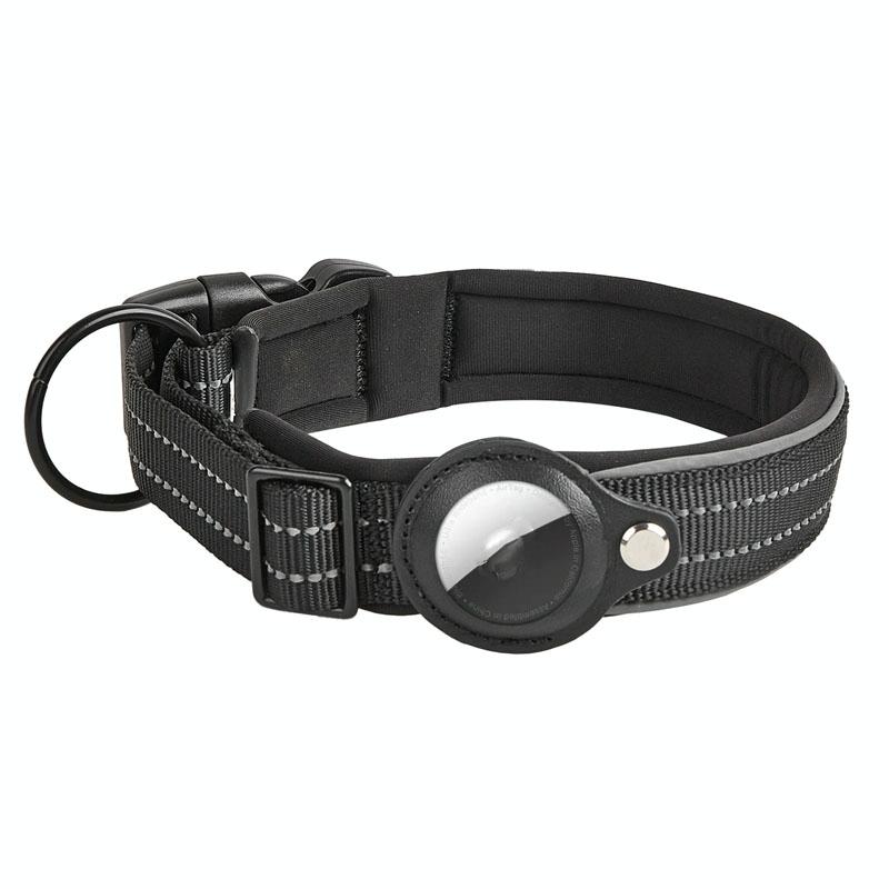 For AirTag Tracker Dog Collar Neoprene Lining Reflective Pet Collar, Size: M(Black)