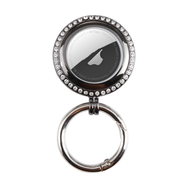 For Airtag Tracking Locator Electroplated Protective Case with Keychain(Black)