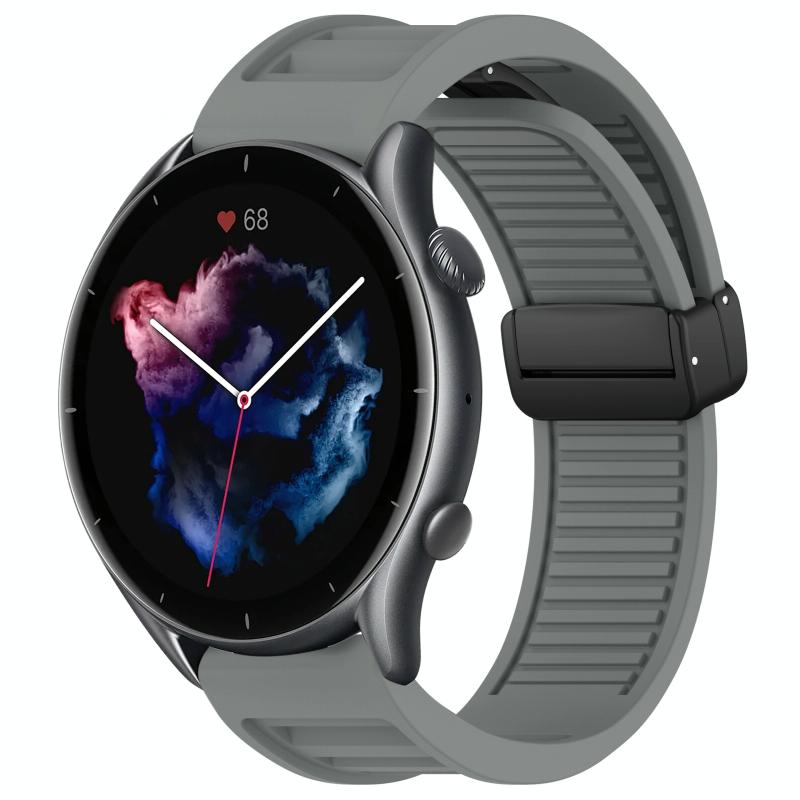 For Amazfit 3 22mm Fold Magnetic Buckle Silicone Watch Band(Grey)