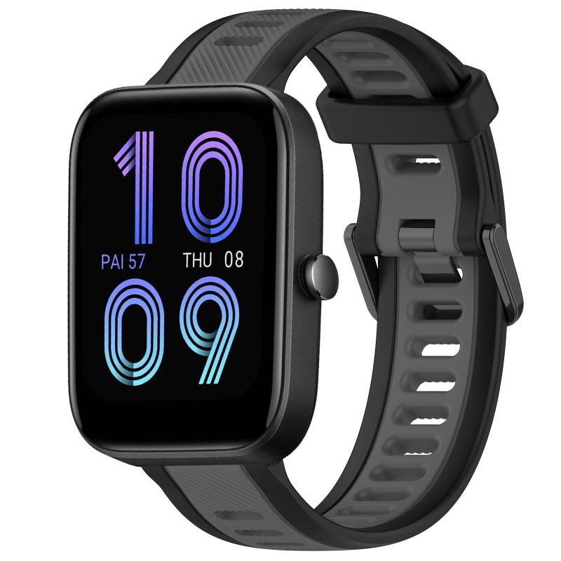 For Amazfit Bip 3 Pro 20mm Two-Color Textured Silicone Watch Band(Grey+Black)