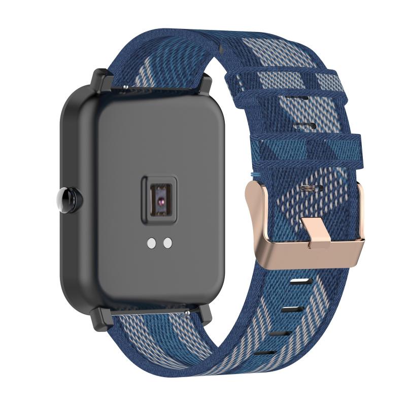 For Amazfit Bip Lite Version 1S / Bip S 20mm Nylon Denim Canvas Replacement Strap Watchband(Blue Stripe)