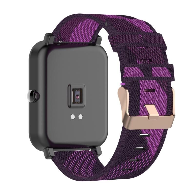 For Amazfit Bip Lite Version 1S / Bip S 20mm Nylon Denim Canvas Replacement Strap Watchband(Purple Stripe)