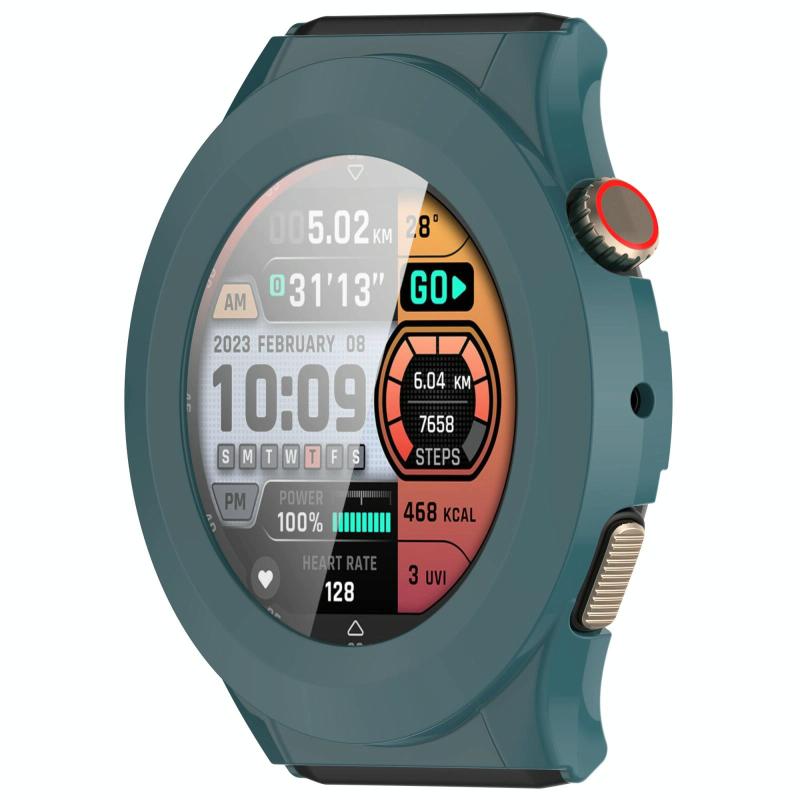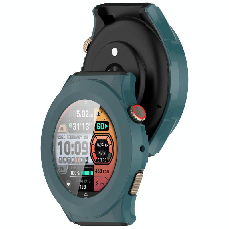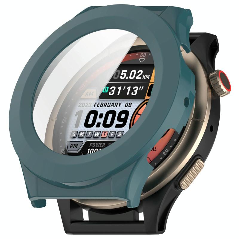 For Amazfit Cheetah Round Tempered Film Integrated PC Watch Protective Case(Pine Green)