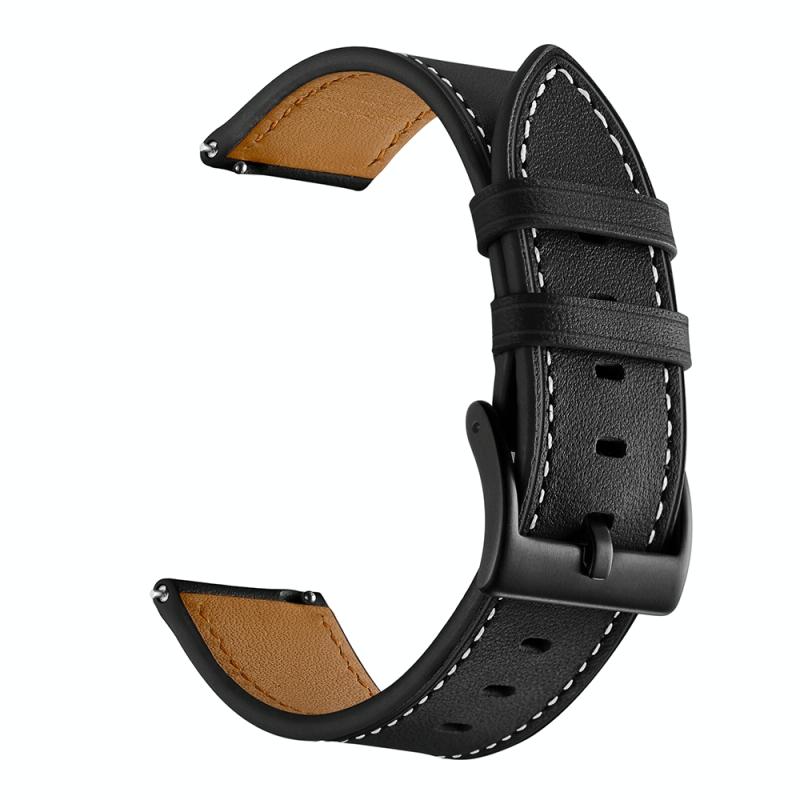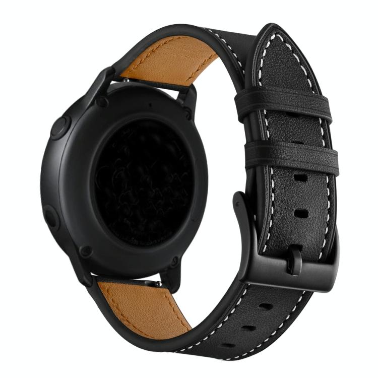 For Amazfit GTR 3 / GTR 3 Pro First Layer Leather Sewing Thread Watch Band(Black)