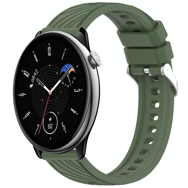 For Amazfit GTR Mini Stripe Texture 20mm Silicone Watch Band(Dark Green)
