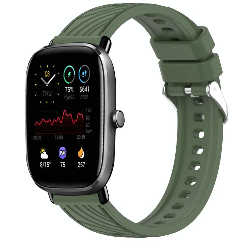 For Amazfit GTS 2 Mini Stripe Texture 20mm Silicone Watch Band(Dark Green)