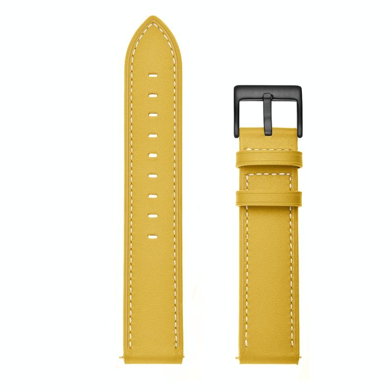For Amazfit GTS 3 / GTS 2e First Layer Leather Sewing Thread Watch Band(Yellow)
