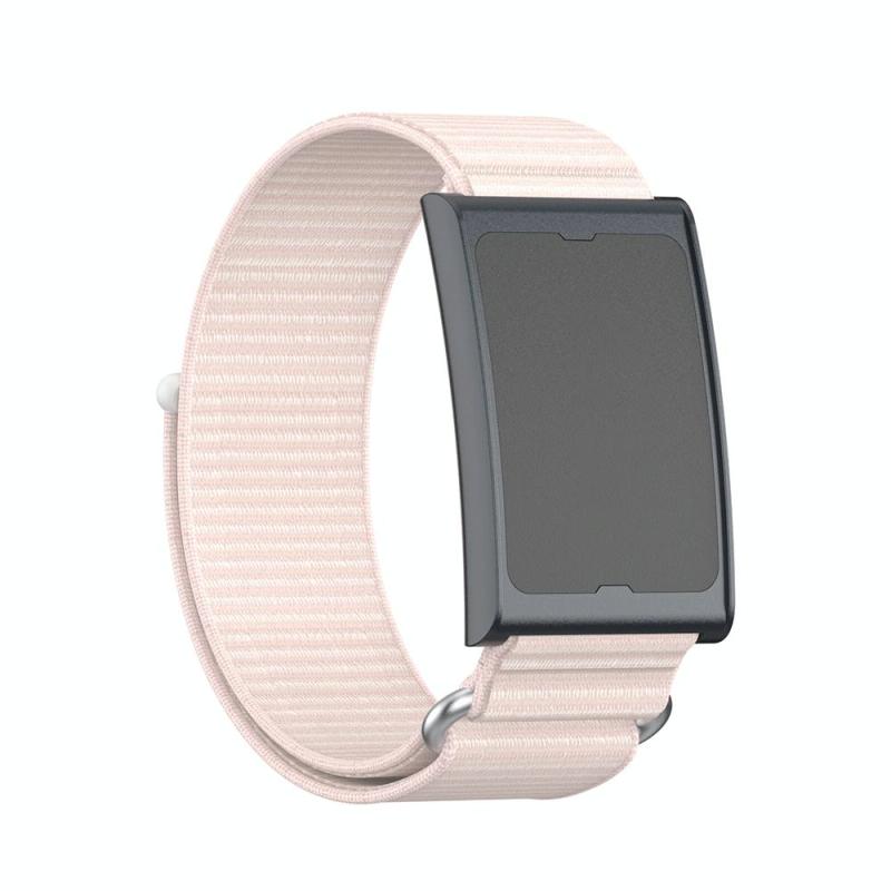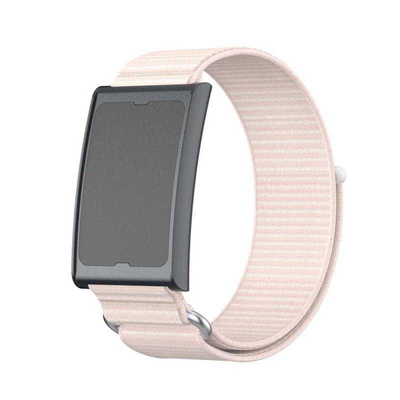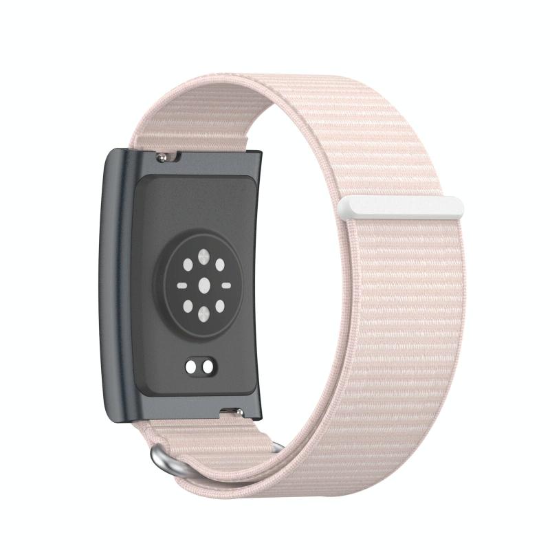 For Amazfit Helio Strap Metal Ring Two Sections Nylon Hook and Loop Fastener Watch Band(Pearl Pink)