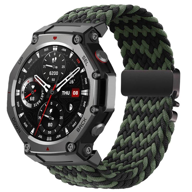 For Amazfit T-Rex 2 Parachute Buckle Elastic Nylon Braided Quick Release Watch Band(Black Green)