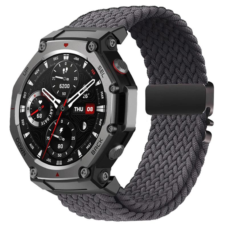 For Amazfit T-Rex 2 Parachute Buckle Elastic Nylon Braided Quick Release Watch Band(Gray)