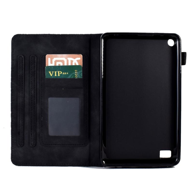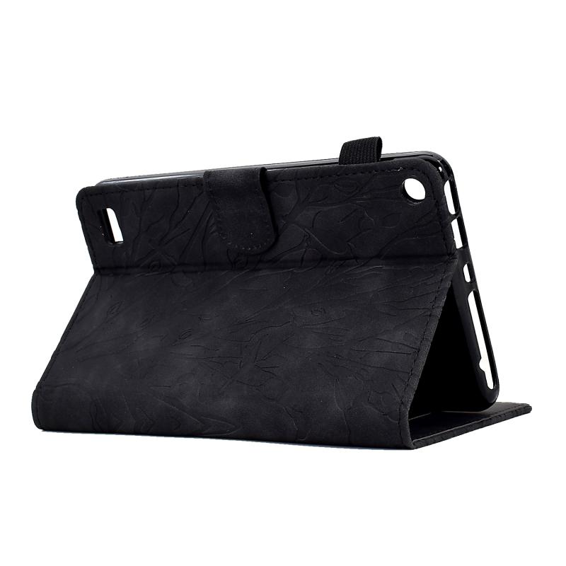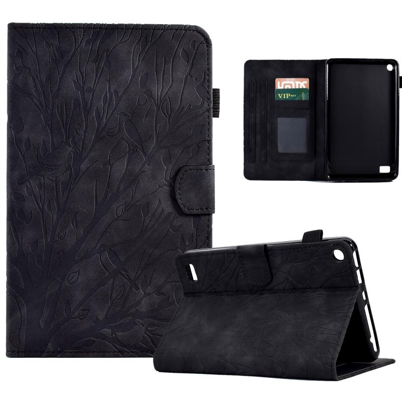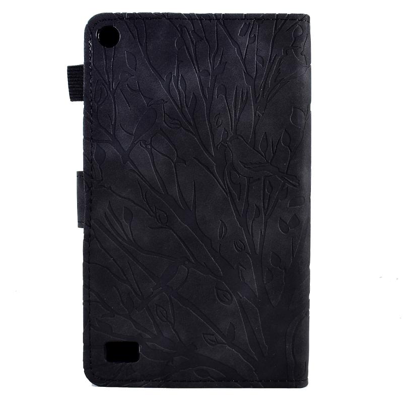 For Amazon Fire 7 2015 2017 2019 Fortune Tree Pressure Flower PU Tablet Case with Wake-up / Sleep Function(Black)