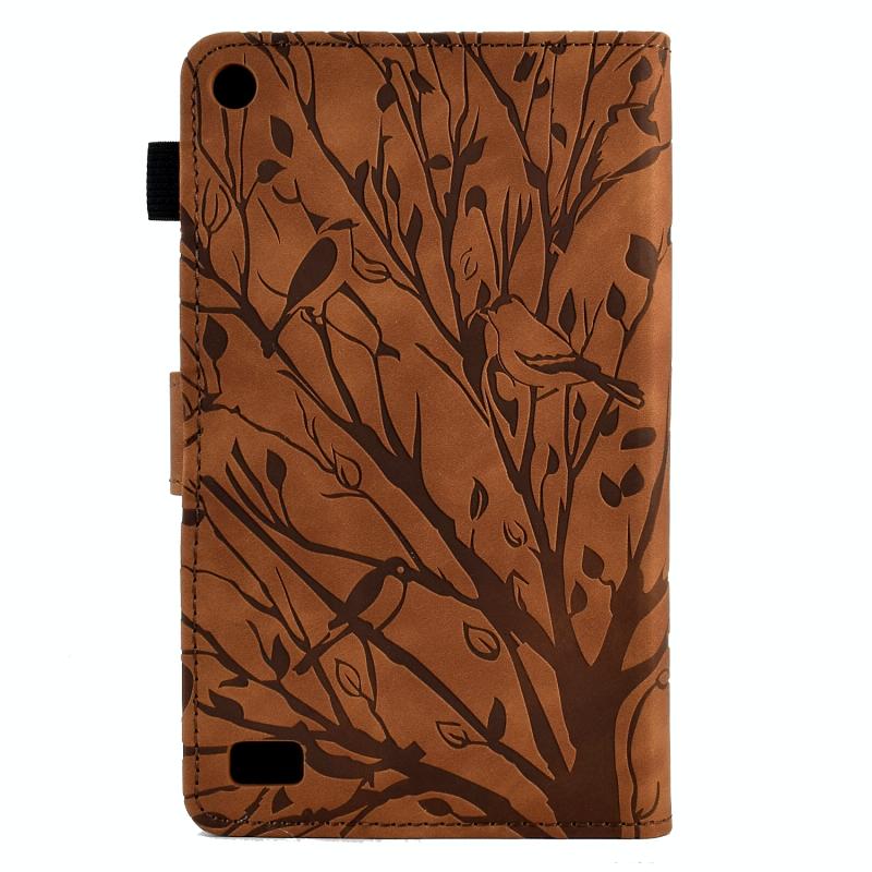 For Amazon Fire 7 2015 2017 2019 Fortune Tree Pressure Flower PU Tablet Case with Wake-up / Sleep Function(Brown)