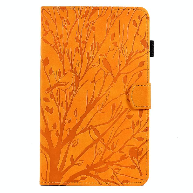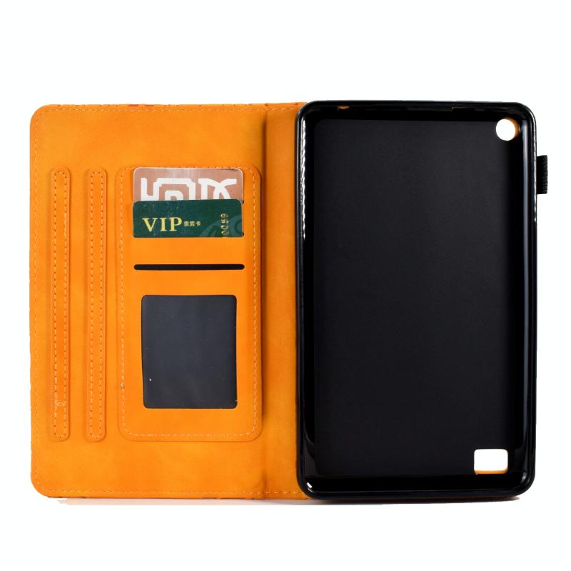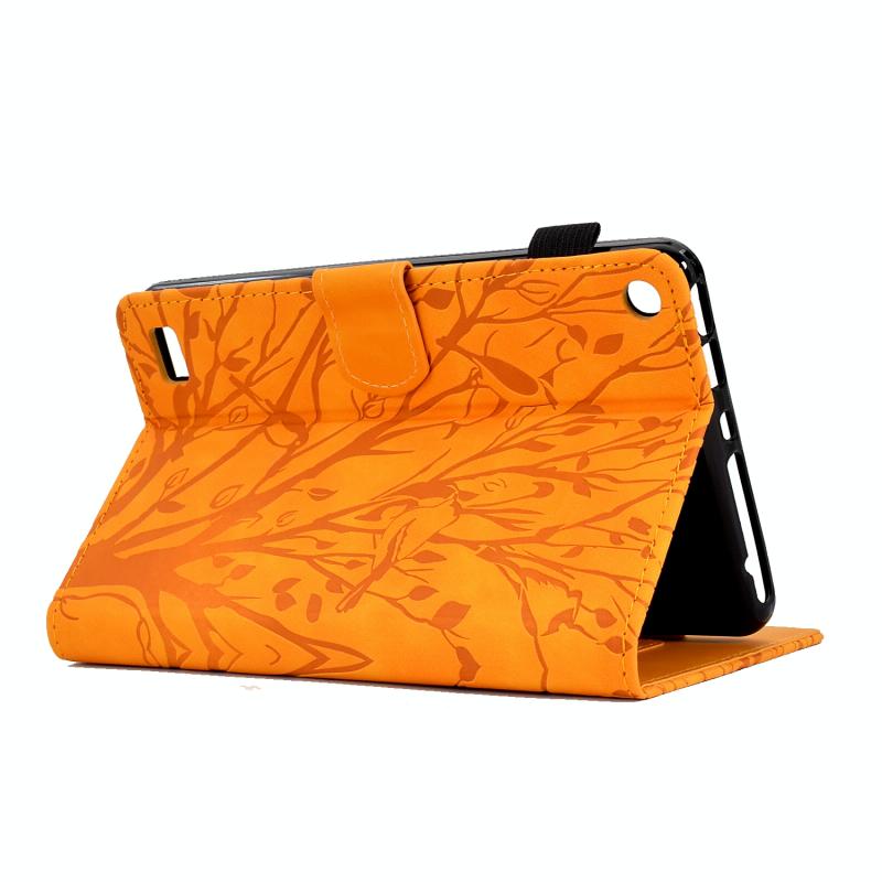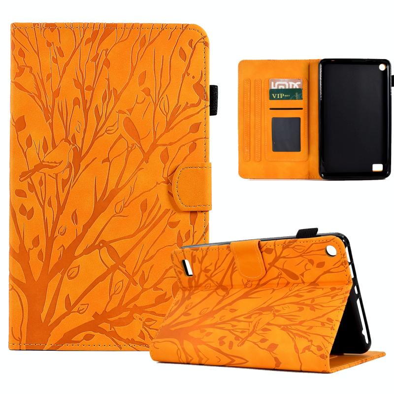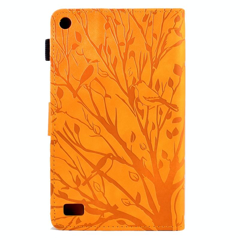 For Amazon Fire 7 2015 2017 2019 Fortune Tree Pressure Flower PU Tablet Case with Wake-up / Sleep Function(Khaki)
