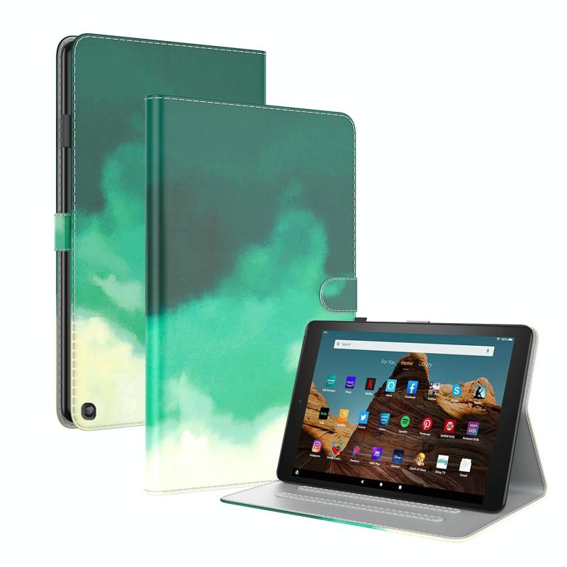 For Amazon Fire HD 10 2023 Watercolor Pattern Flip Leather Tablet Case(Cyan Green)