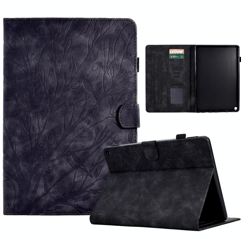 For Amazon Fire HD 10 Plus / HD 10 2021 Fortune Tree Pressure Flower PU Tablet Case with Wake-up / Sleep Function(Black)