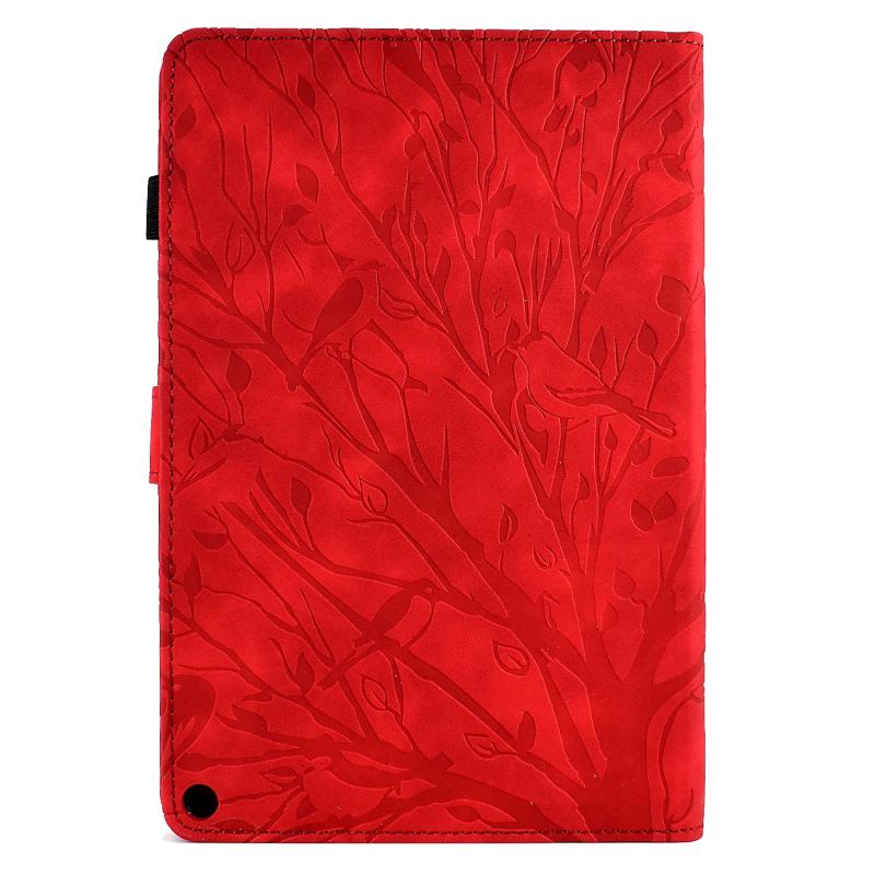 For Amazon Fire HD 10 Plus / HD 10 2021 Fortune Tree Pressure Flower PU Tablet Case with Wake-up / Sleep Function(Red)