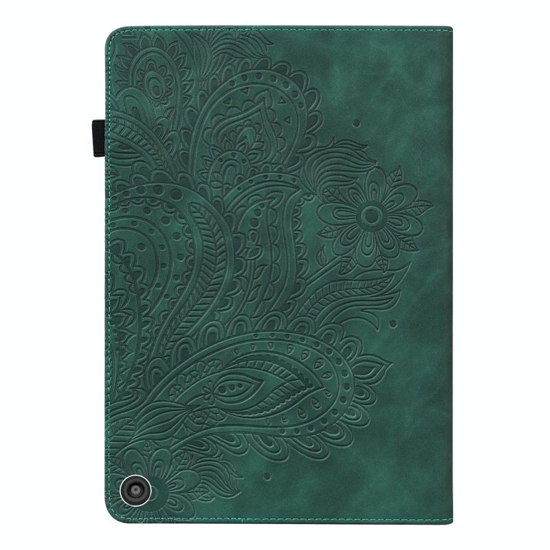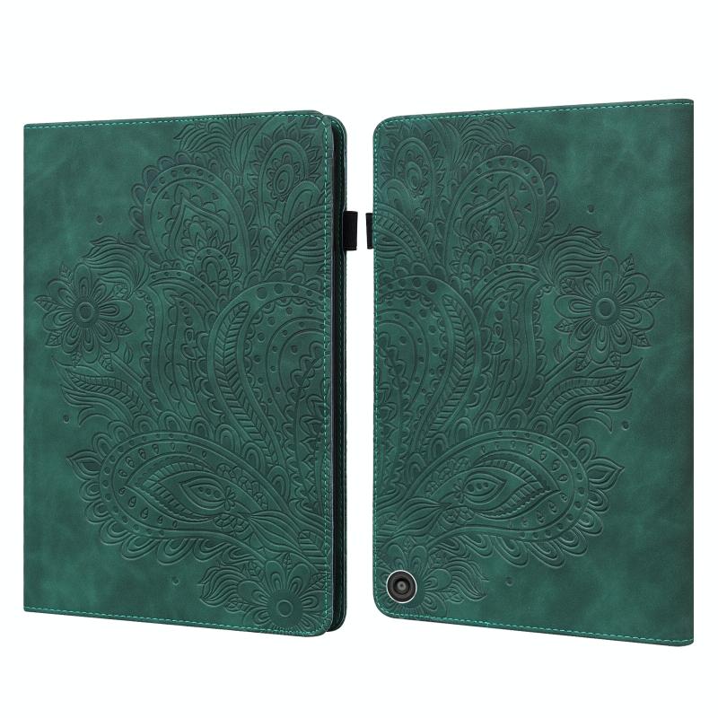 For Amazon Fire HD 8 2020 / HD 8 Plus 2020 Peacock Embossed Pattern Leather Tablet Case with Sleep / Wake-up Function(Green)