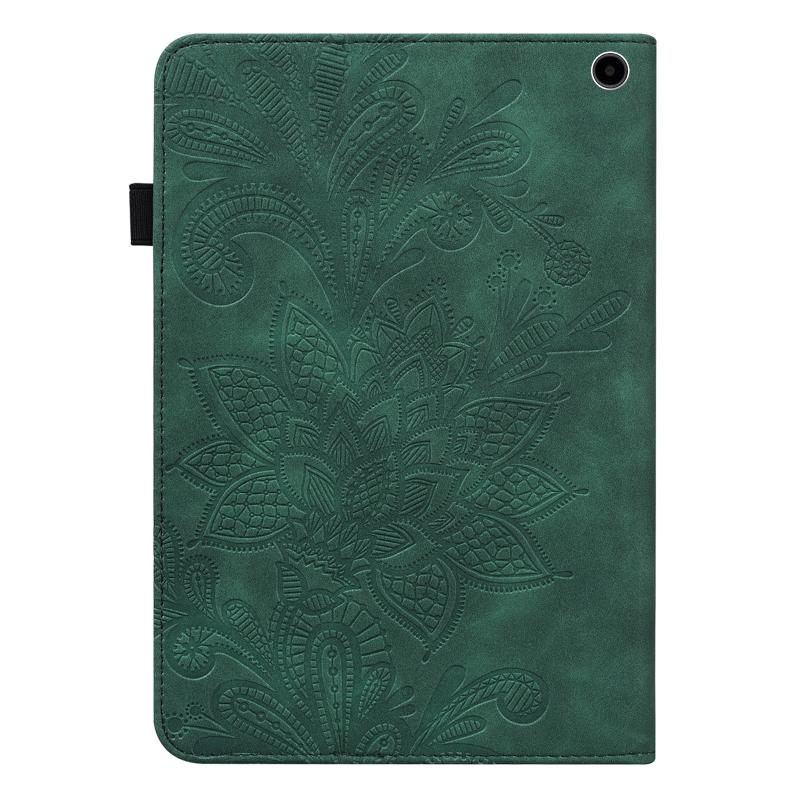 For Amazon Fire Max 11 Lace Flower Embossing Pattern Leather Tablet Case(Green)