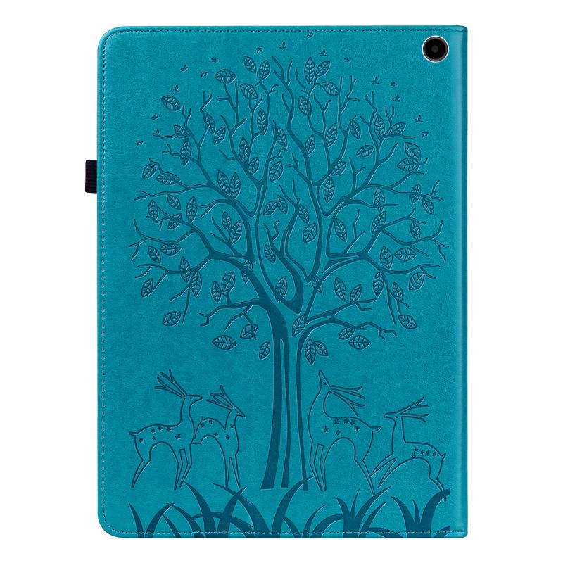 For Amazon Fire Max 11 Tree & Deer Embossed Leather Tablet Case(Blue)