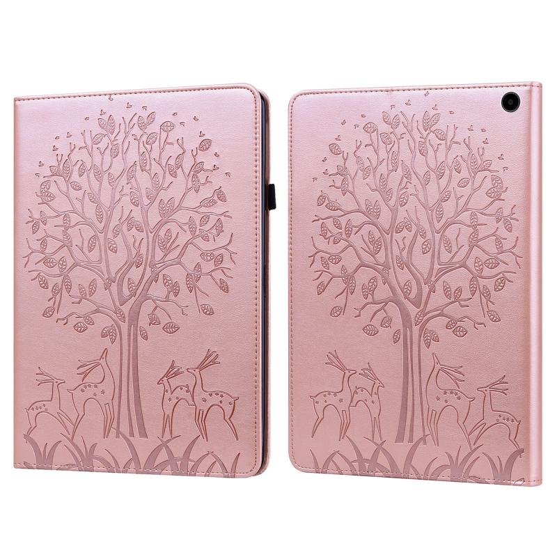 For Amazon Fire Max 11 Tree & Deer Embossed Leather Tablet Case(Pink)