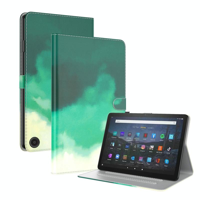 For Amazon Fire Max 11 Watercolor Pattern Flip Leather Tablet Case(Cyan Green)