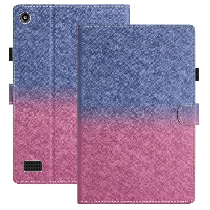 For Amazon Kindle Fire 7 2019 / 2017 / 2015 Stitching Gradient Leather Tablet Case(Blue Rose)