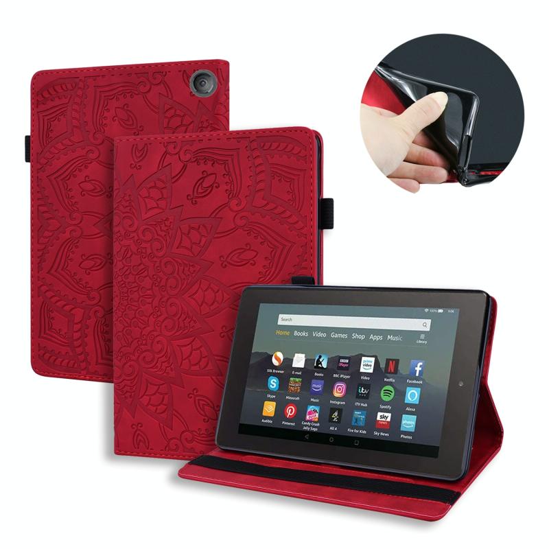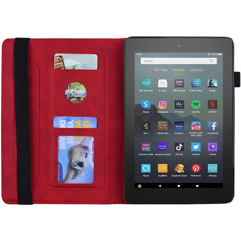 For Amazon Kindle Fire 7 2022 Calf Texture Embossed Flip Leather Tablet Case(Red)