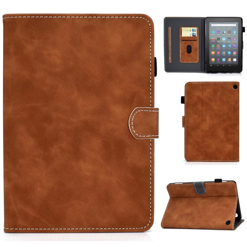 For Amazon Kindle Fire 7 2022 Cowhide Texture Smart Leather Tablet Case(Brown)