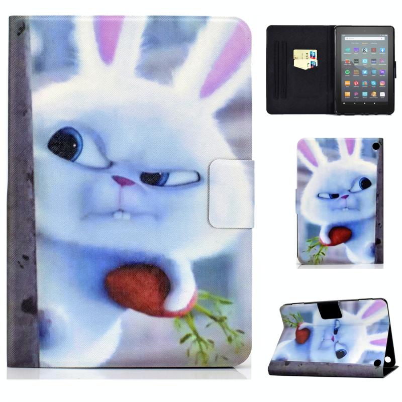 For Amazon Kindle Fire 7 2022 Electric Horizontal Flat Painted Leather Tablet Case(White Rabbit)